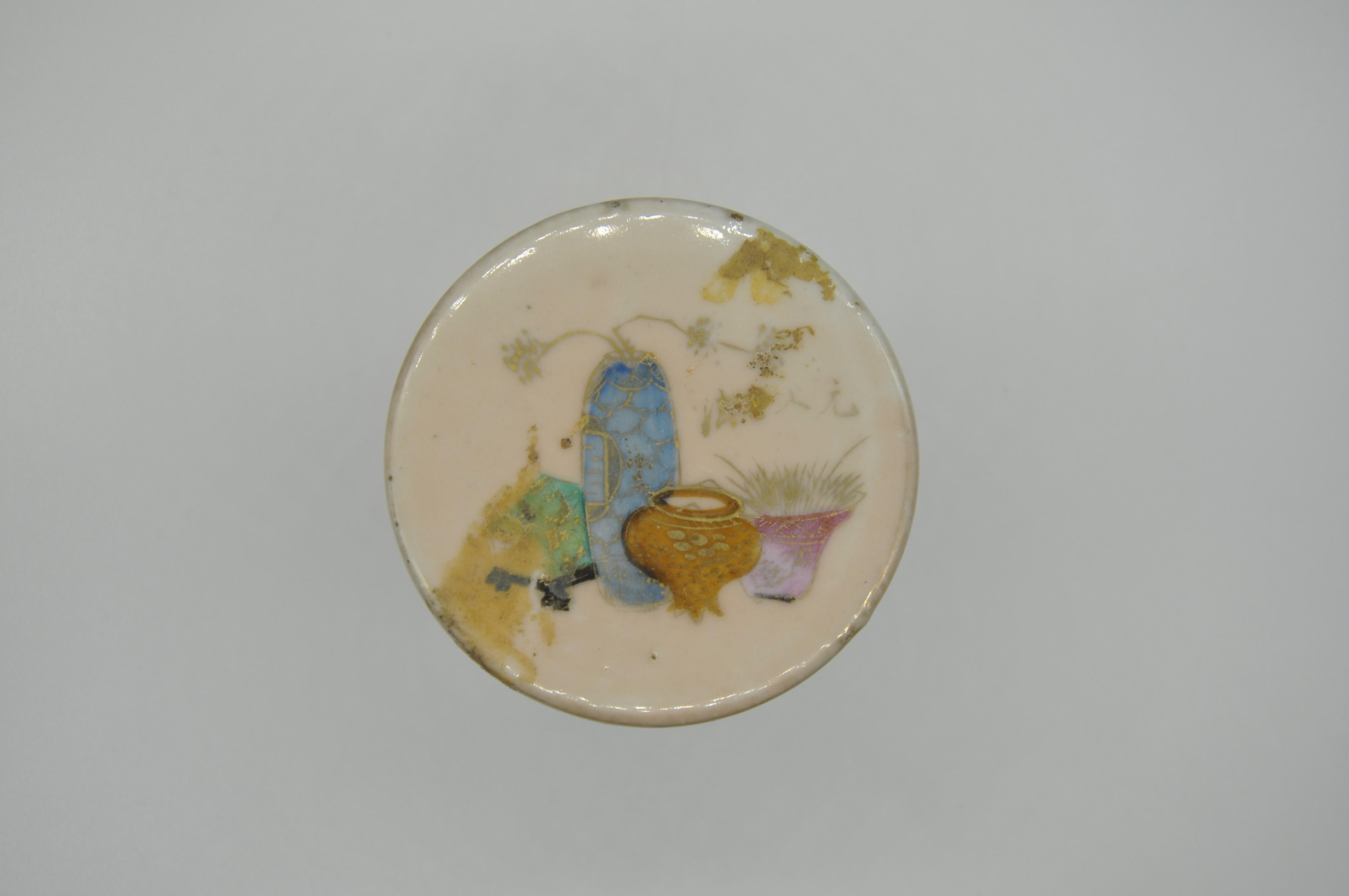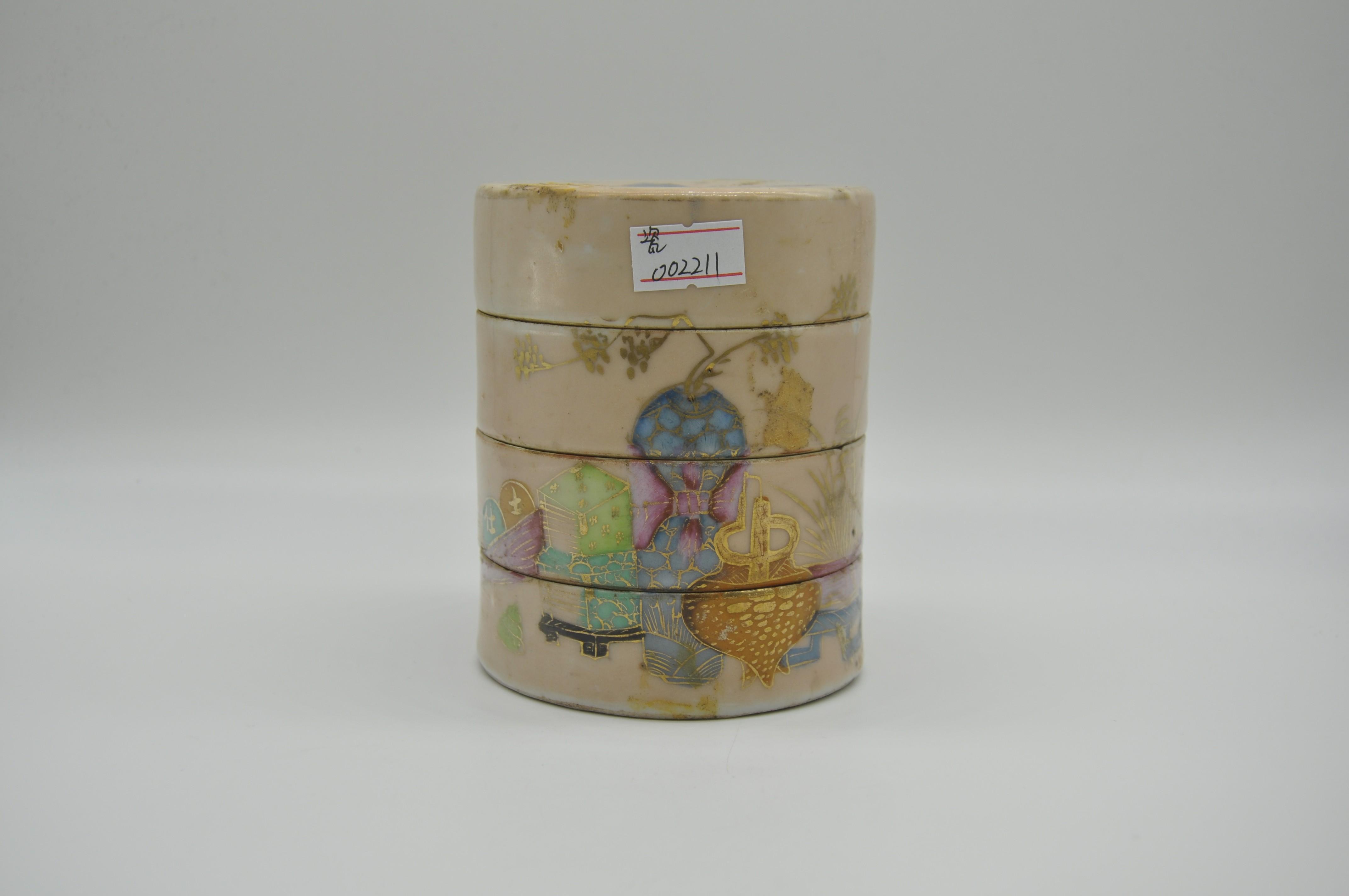 清末民国米黄釉粉彩博古层盒,清末民国,尺寸cm(口径*底径*高)8.1*8.2*10.3